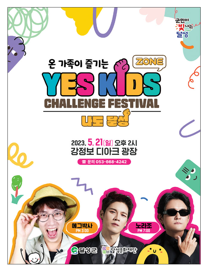 (재)달성문화재단은 5월 21일(일) 오후 2시부터 강정보 디아크 광장 일대에서 ‘YES! 키즈존’ 행사를 개최한다.