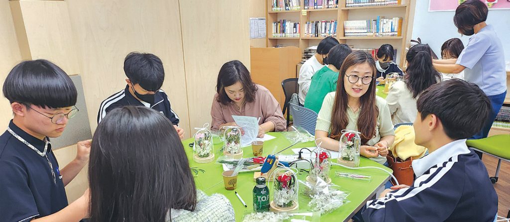 성산중학교(교장 신감철)는 가정의 달을 맞이해 지난 2일(수) 희망하는 30여 명의 학부모, 학생과 함께 마음챙김 프로그램 연수로 아름다운 꽃을 이용한 체험 프로그램을 운영했다.<자료제공:성산중학교>