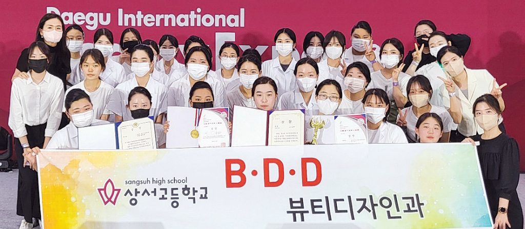 또한, 뷰티디자인과 학생들은 지난 5월 21일(일) 한국피부미용사중앙회에서 주관한 ‘대구광역시장배 국제피부미용경기대회’에서도 고등부 얼굴 스웨디시 부문에 8명이 출전해, △대구시교육감상 1개 △대구광역시장상(금상) 1개와 한국피부미용사중앙회 대구지회장상인 △금상 2개 △은상 3개 △동상 1개를 수상하며 8명 전원 수상의 영예를 안았다.