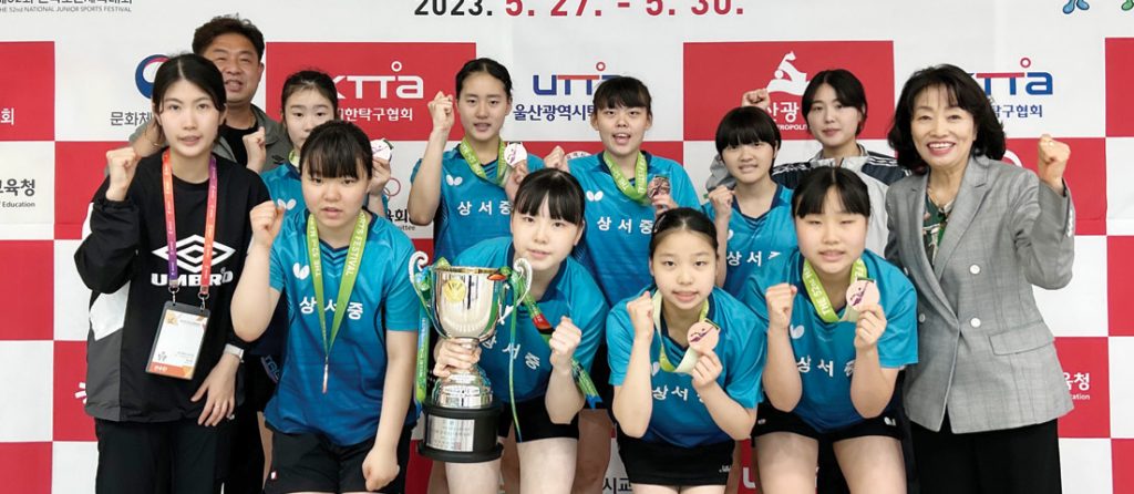 대구상서중학교(교장 박은경)는 지난 5월 27일(토)~30일(화)까지 울산 전하체육센터에서 열린 제52회 전국소년체육대회 준결승에서 강력한 우승 후보 팀인 서울 선발팀에게 접전 끝에 4대 2로 석패 하여 동메달을 획득했다. 상서중 탁구부는 김시현, 이나연(1학년), 박예진, 이다은(2학년), 서현지, 이아윤(3학년)총 6명으로 구성된 단체전에서 아쉽게도 서울 선발팀에게 4:2로 패해 동메달을 목에 걸었다.