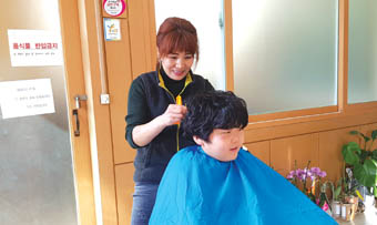주읍 예산3리 이영숙 원장이 거동이 불편하거나 미용실 이용에 어려움을 겪는 어르신, 장애인, 지역센터 아동을 대상으로 미용서비스를 제공했다.