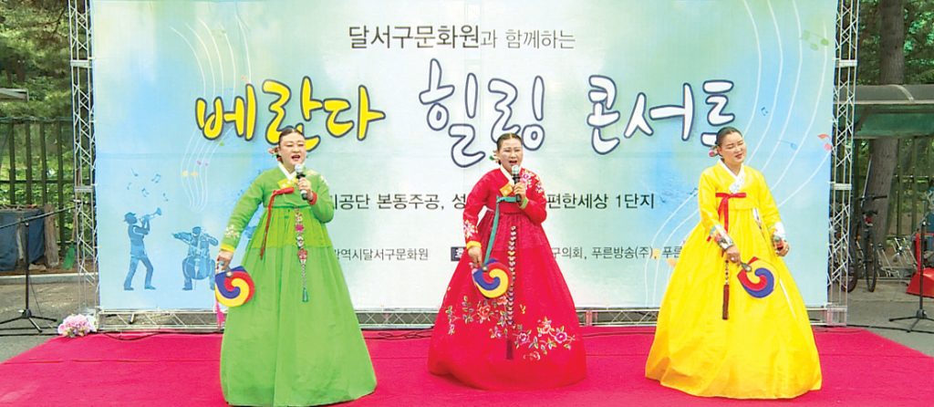 달서구문화원이 주최한 베란다힐링콘서트가 지난 8일(목)과 9일(금) 본동주공, 성당레미안 아파트에서 개최됐다. 아파트주민들의 화합과 공동체 활성화를 위해 마련된 이번 베란다 힐링 콘서트는 달서구문화원이 주최하고 달서구, 달서구의회, 푸른방송과 푸른신문이 후원해 통기타, 경기민요, 현악3중주, 성악, 트롯가수의 공연 등 수준 높은 무대가 펼쳐졌다. 이세경 객원기자