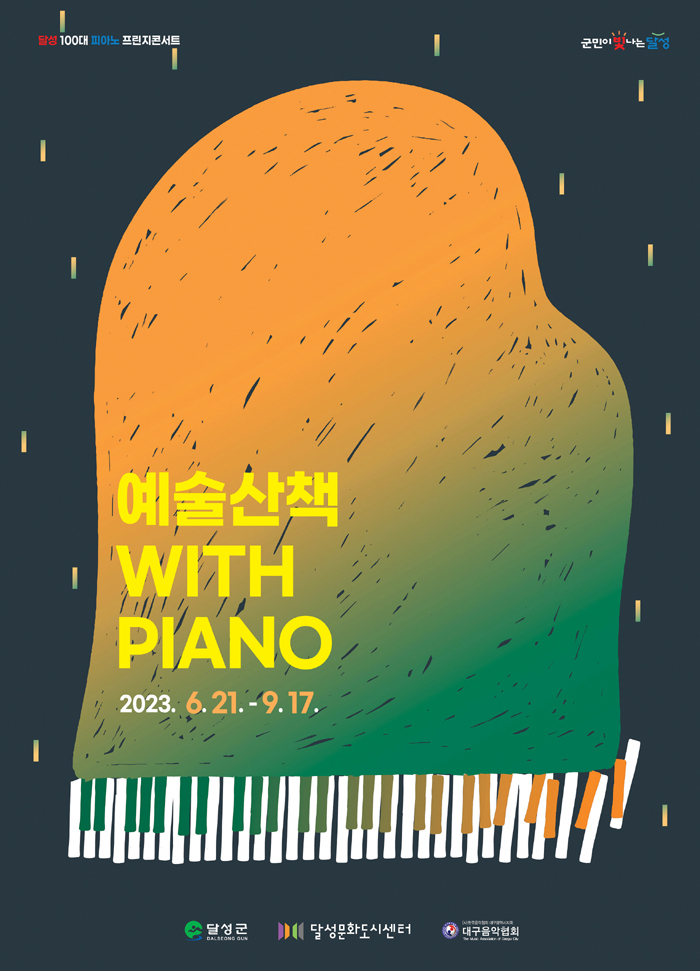 달성문화재단 달성문화도시센터(이사장 최재훈)는 2023년 ‘달성100대피아노’(9월 23, 24일 개최)공연 개최 D-day 100일을 맞아 공연에 참여할 시민피아니스트 모집과 함께 ‘D-day 프린지 콘서트’와 찾아가는 음악회 ‘예술산책 with 피아노’를 개최한다.