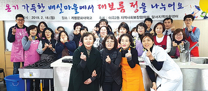 달서구 이곡2동 지역사회보장협의체는 지역에 위치한 달서지역자활센터, 계명문화대학교와 함께 작년에 이어 정월대보름 음식을 만들어 소외계층 60세대에 나누는 뜻깊은 시간을 가졌다.