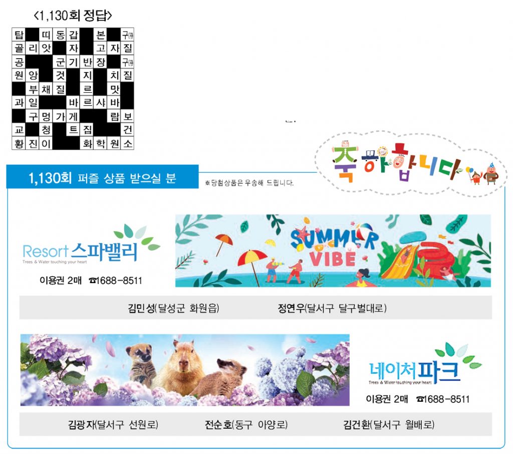 ♣ ‘가족과 함께 풀어보세요’정답을 아시는 분은 본사 편집부로 보내주시기 바랍니다. 7월 25일까지 도착된 엽서 중에서 추첨을 통해 상품을 드립니다. 주소를 정확히 기재해 주십시오. 당첨상품을 우송해 드립니다.