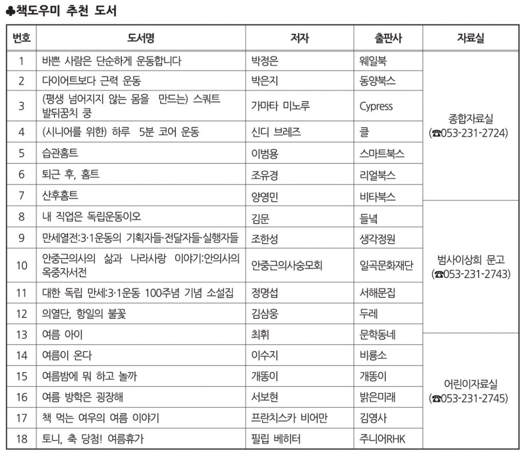 보다 자세한 사항과 도서 목록은 두류도서관 홈페이지(library.daegu.go.kr/duryu)를 참고하거나 해당자료실로 문의하면 된다.