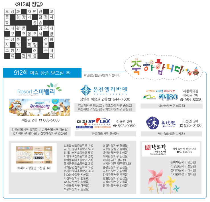 ◑ ‘가족과 함께 풀어보세요’ 낱말퍼즐을 만들어 푸른신문으로 보내주세요. 채택된 분께는 작은 선물을 우송해 드립니다.