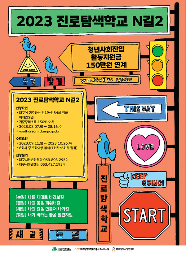 대구광역시와 대구광역시청년센터는 청년에게 진로탐색의 기회를 제공하는 ‘진로탐색학교 N길’에 참여할 청년들을 8월 16일(수)까지 모집한다.