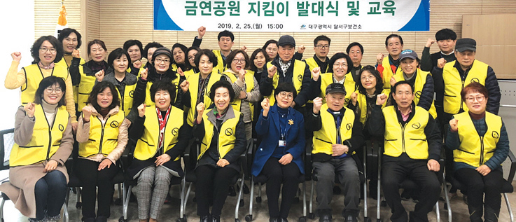달서구는 지난 25일 보건소 보건교육장에서 금연공원 홍보를 담당할 자원봉사자 30명이 참여해 ‘금연공원 지킴이 발대식’을 가졌다.