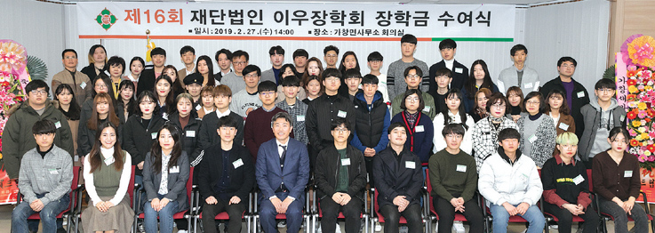 재단법인 이우장학회는 지난달 27일 가창면사무소 회의실에서 이사회 임원 및 장학생 등 약 100여 명이 참석한 가운데 제16회 장학금 수여식을 개최했다.