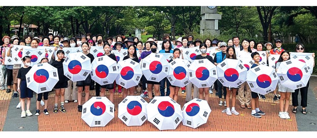 달서구 용산1동(동장 박영숙) 우리마을 교육나눔 추진위원회(위원장 이해영)가 지난 11일(금) 용산근린공원 분수광장에서 제78주년 광복절을 기념해 청소년과 지역주민 50여 명이 참여한 태극기 플래시몹 행사를 가졌다.