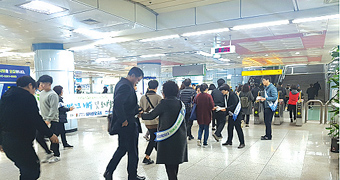 대구도시철도공사 2고객센터 강창관리역은 대구시에서 지정·운영하는 ‘대중교통 탑시 Day’를 맞아 지난 11일(월) 오전 8시 관리역 산하 8개역 대합실에서 도시철도 이용객들에게 미세먼지 마스크를 배부하며 도시철도 이용홍보 캠페인을 펼쳤다.