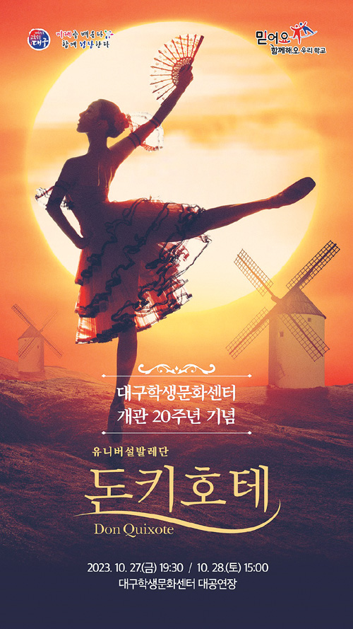 대구학생문화센터(관장 배호기)는 오는 10월 27일(금) 오후 7시 30분, 10월 28일(토) 오후 3시에 개관 20주년 기념 유니버설발레단 초청 특별공연으로 ‘돈키호테’ 전막 공연을 개최한다.