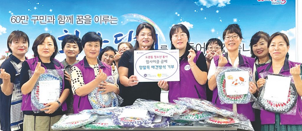 우리마을교육나눔위원회(위원장 배지숙)는 지난 14일(목) 유기견 보호소인 호루라기 쉼터(대구 지묘동 소재)에 마을의 청소년들이 양말목을 재활용해 만든 반려견 방석 40개를 기부했다.