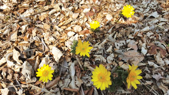 달성군 가창면은 상원산 일원 계곡 변에 봄을 알리는 야생화인 복수초가 피기 시작했다고 밝혔다.