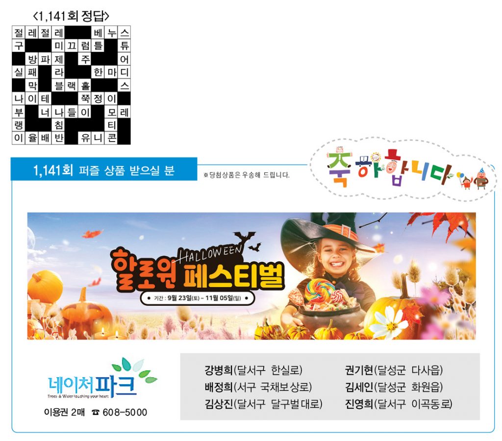 ♣ ‘가족과 함께 풀어보세요’정답을 아시는 분은 본사 편집부로 보내주시기 바랍니다. 10월 31일까지 도착된 엽서 중에서 추첨을 통해 상품을 드립니다. 주소를 정확히 기재해 주십시오. 당첨상품을 우송해 드립니다.