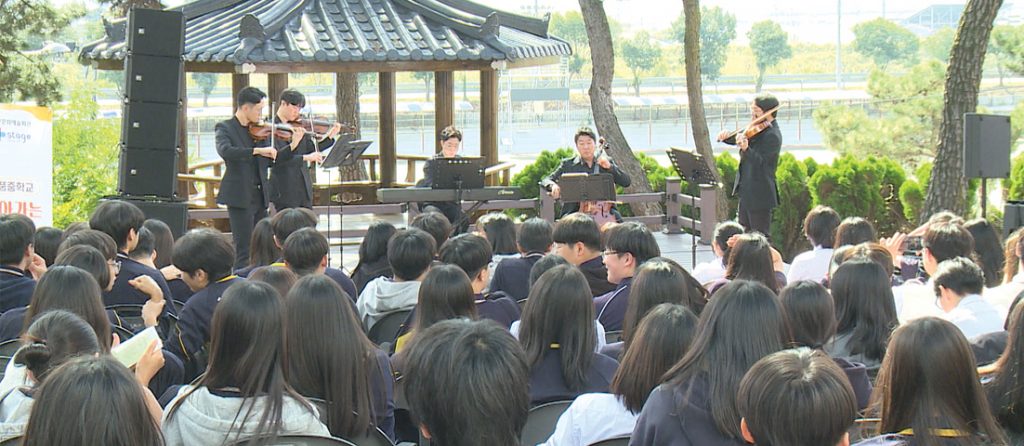 대구문화예술회관 플러스스테이지 ‘찾아가는 공연’이 지난 13일(금) 현풍중학교에서 열렸다. 찾아가는 공연은 대구시립예술단의 대표 기획 공연으로 꾸준히 진행되어 오고 있는 프로그램으로 대구시립예술단이 직접 찾아가 시민과 소통하는 공연이다. 이날 공연은 피아노 5중주와 성악 중창 등으로 현풍중학교 학생들에게 예술과 문화를 가까이에서 경험할 수 있는 기회를 제공했다. 안상득 객원기자