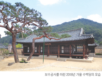2018년 수백당(守白堂)에는 큰 변화가 있었다. 수백당 본채와 경내에 대대적인 보수공사가 있었기 때문이다. 기와도 갈고 조경까지 손을 본 탓에 공사 이전과 이후의 모습이 많이 달라졌다. 그런데 이러한 큰 변화들 사이에 눈에 잘 띄지 않는 작은 변화도 있었다. 작은 변화들 중에서 최고의 압권은 아무래도 ‘문수봉선생영박송덕비(文壽峰先生永樸頌德碑)’인 것 같다.