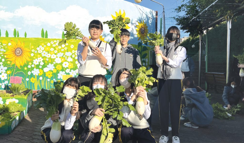 프로그램에 참여한 1학년 학생은 “하루가 다르게 자라는 무, 쪽파 등의 채소를 보며 신기하고도 재미있었다. 특히 친구들과 함께 직접 심고 가꾼 채소를 수확하여 김장했던 경험은 매우 뜻깊었다.”고 소감을 전했다.