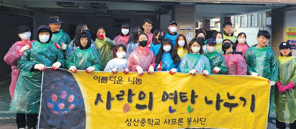이번 활동은 학생·학부모·교사가 함께 새봄처럼 성장하는 ‘새봄(SAEBOM)성산 학부모 프로젝트’의 일환으로 실시됐으며, 교내 샤프론(학부모)·프론티어(학생) 봉사단을 중심으로 추운 겨울을 나는 이웃에 연탄을 기부하고 배달하며 따뜻한 온기를 나누었다.