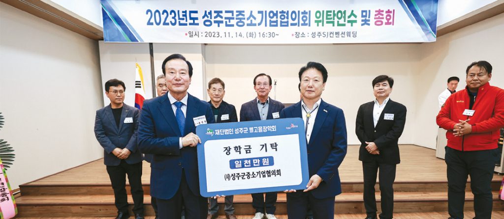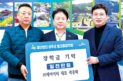 대가면 이기식(60) 씨와 ㈜제이이티(대표 곽종화), (사)성주군중소기업협의회(이사장 윤정환)는 지난 14일(화) 지역인재를 위한 장학금을 각각 500만 원, 1,000만 원, 1,000만 원을 (재)성주군별고을장학회에 기탁했다.