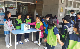 4월 26일에 실시한 전교 학생회의에서 지난 4월 발생한 산불로 큰 피해를 입은 강원 동해안 주민들에게 도움을 주고자하는 마음을 담아 성금 모금 운동을 하기로 결정하여 4월 30일~5월 2일까지 3일간 강원 동해안 일원 산불 피해 성금 모금 운동을 펼쳤다. 이는 전교학생회에서 자율적으로 결정한 것으로 학생들이 강원 동해안 일원 산불 피해에 관심을 가지고 스스로 나서서 모금 운동을 펼친다는 데 주목해 볼 만 하다. 이에 전교 학생회 및 4~6학년 학급 학생회 임원들은 아침 등교 시간에 교내 두 곳에서 동시에 성금 모금 운동을 실시하여 많은 학생들이 참여했다.