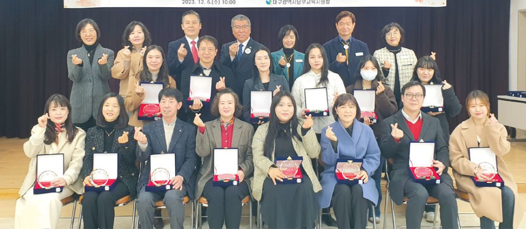 대구남부교육지원청은 지난 6일(수) 오전 10시 남부 관내 학생들을 위해 다양한 교육기부 활동을 한 개인 27명, 기관 4곳과 함께 ‘2023년 남부 행복로딩 교육기부 유공자 감사패 수여식’을 가졌다.