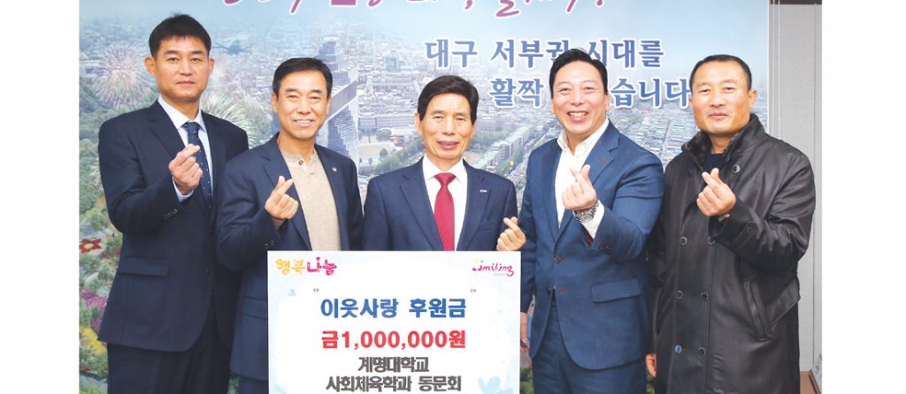 계명대학교 사회체육학과 동문회(회장 강동혁)는 지난해 12월 28일(목) 후원금 100만 원을 달서구에 기탁했다.