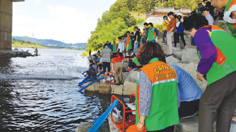 성서 강창교 하단 금호강 강변에서 실시된 이날 교육에는 직원 90여 명, 지역자율방재단원 110여 명이 참석해 직접 양수기를 작동하여 물을 퍼내는 등 양수기 작동 교육에 뜨거운 열기를 느낄 수 있었다.