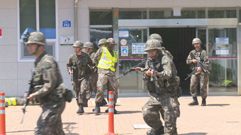 훈련은 적의 폭발물 테러에 따른 화재 대비훈련의 시나리오로 오후 2시부터 한시간 동안 진행됐다.