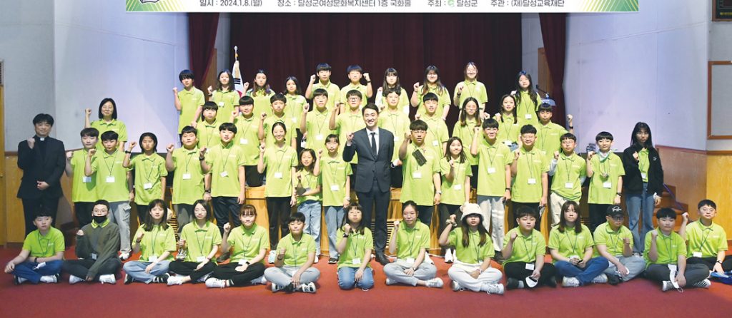 (재)달성교육재단은 지난해 12월 ‘초등 영어 방학캠프’ 사전 설명회에 이어 지난 8일(월)에 달성군여성문화복지센터 대강당에서 영어 방학캠프 발대식을 가졌다. 이번 발대식에 참가한 관내 초등학교 5, 6학년 학생 50명은 필리핀 어학연수 및 문화 체험을 하게 된다. ‘초등 영어 방학캠프’는 1월 8일(월)~2월 5일(월)까지 4주간 필리핀 바콜로드 현지에서 진행될 예정이다. <자료제공:(재)달성교육재단>