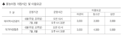 아울러 군관계자는 “수많은 인파로 인한 안전사고 예방과 물놀이장 수질관리에 철저를 기할 것을 약속하며, 물놀이장을 찾는 관광객들도 선진 시민의식을 갖고 기존 질서 확립과 안전수칙을 준수하고 물놀이장에서 발생된 쓰레기는 되가져 가져가 주길바란다”고 당부했다.