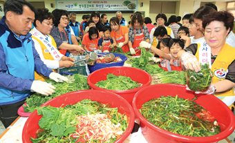달서구는 지난 6일 오전 10시 구청 구내식당에서 자원봉사자 140명이 참여해 열무물김치를 정성껏 담궈 어려운 이웃에게 전달하는 ‘희망+ 여름김장 나눔 마당’을 개최했다.