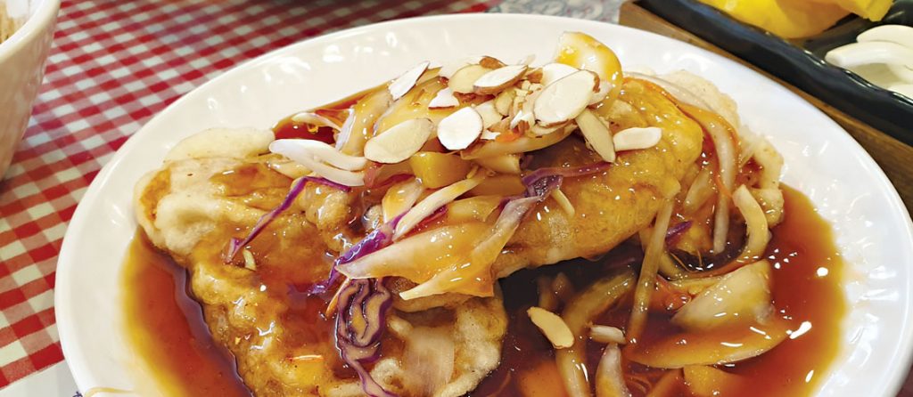 ‘찹쌀탕수육’은 기본적으로 탕수육 위에 소스가 부어져서 나오는 부먹형태이다. 혹시나 탕수육을 소스에 찍어먹는 찍먹을 원하는 경우에는 꼭 탕수육 주문 시 찍먹으로 해달라고 요청을 해야 한다.