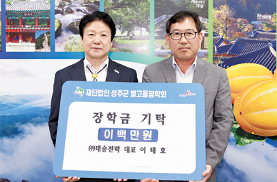 성산이씨 기국공파 구룡종중(대표 이광록)에서 300만 원, ㈜태승전력(대표 이태호)에서 200만 원을 지난달 28일(목) (재)성주군별고을장학회에 장학금으로 기탁했다.
