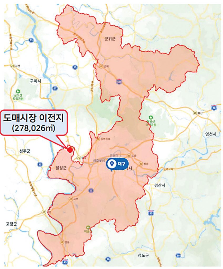 공영도매시장 시설현대화사업 시행자로 대구광역시가 선정돼 농수축산물도매시장 하빈면 이전이 한층 가시화되고 있다.