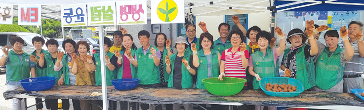옥포읍 새마을협의회ㆍ부녀회는 7월 29일(월) 옥포읍사무소 주차장에서 새마을회원, 각 읍면 회장단 등 30여 명이 참여해 EM흙공 1,500개를 만들었다.