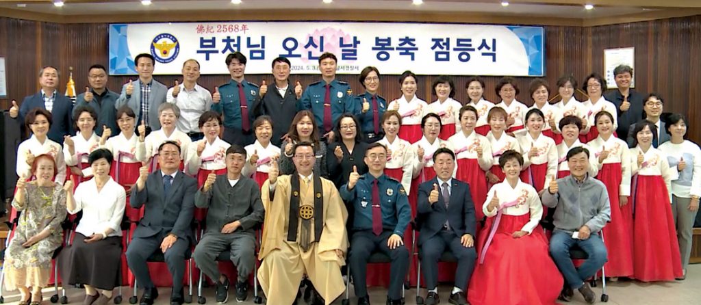 대구 달서경찰서는 불기 2568년 부처님 오신 날을 맞아 지난 3일(금) 2024 부처님오신날 봉축 점등식 행사를 달서경찰서 대강당에서 개최했다. 이번 점등식에는 달서경찰서 관계자와 함께 효명정사,원경정사, 법안스님 금강합창단 등 100여 명이 참석한 가운데 삼귀의례, 반야심경 봉독, 효명 경승실장의 봉축법어가 이어졌다. 전정현 객원기자