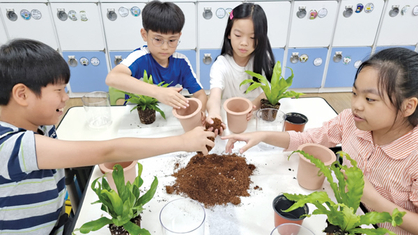 대구신월초등학교(교장 권금자)는 환경의 날을 맞아 지난달 28일(화) 한국가스공사와 사회적 기업인 트리플래닛과 협력해 교실 숲 조성 활동을 진행했다. 교실 환경에서 잘 자랄 수 있는 공기정화식물인 아레카야자와 멸종위기식물인 파초일엽을 포함해 총 572그루의 식물이 교실에 배치됐으며, 학생들이 일회용 마스크 자투리 원단과 재활용된 투명 페트병으로 만든 화분에 직접 반려 식물을 옮겨 심으며 생명의 소중함을 느끼고 환경 문제에 관심을 가질 수 있도록 했다.