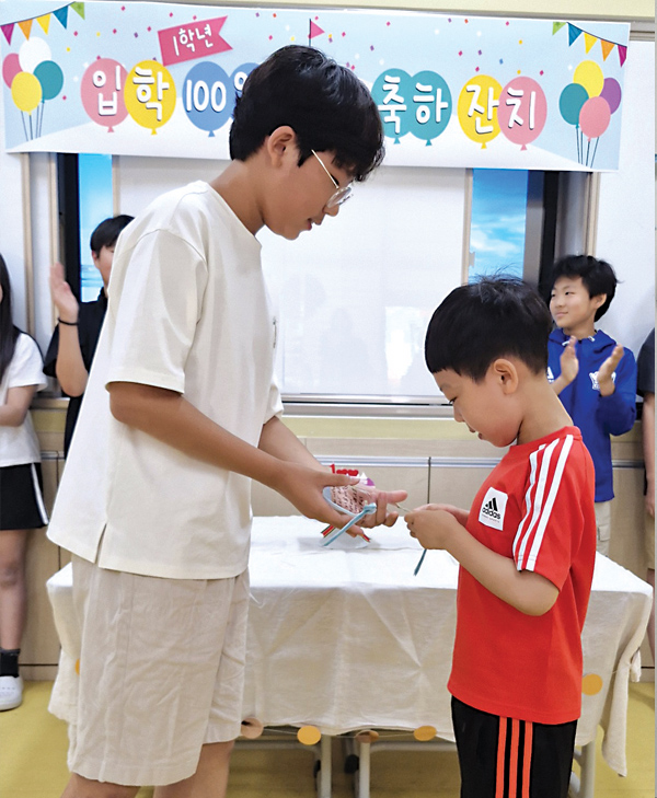 백일잔치에 참여한 1학년 학생들은 6학년 선배들이 준 덕담 카드를 받고 언니, 오빠들에게 고마움을 표하며 끈끈한 6남매 사랑의 고리를 맺어갈 것이다.