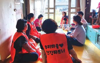 우리마을건강파트너 자원봉사단은 지역에서 가장 가까운 소외계층 주민에게 말벗과 우울증 및 자살예방등 건강파수꾼 역할을 하는 단체로 이번봉사에는 배효임(군의회부의장), 정순옥(봉사단회장)과 회원님, 통합사례관리사, 치매안심센터 담당자 등 10여 명이 함께 펼쳤다.