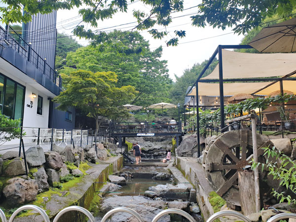 아래는 기존 계곡의 모습을 그대로 살려 나무 밑 그늘에서 시원한 계곡물에 발을 담그고, 실내에는 연세가 있으신 분들도 많이 오셔서 소담을 나누면서 여유 있는 시간을 보내고 계셨다.