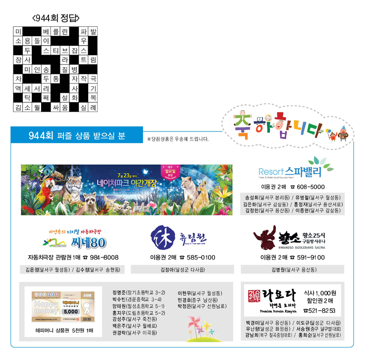 ◑ ‘가족과 함께 풀어보세요’ 낱말퍼즐을 만들어 푸른신문으로 보내주세요. 채택된 분께는 작은 선물을 우송해 드립니다.