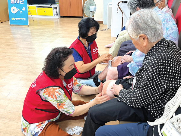 달성군남부노인복지관(관장 김홍수)에서 운영하는 선배시민 봉사단 중 ‘별빛 스포츠 테이핑 봉사단’(매월 둘째, 넷째 주 화요일)과 ‘두잇 풍선아트 봉사단’(매월 셋째 주 화·수요일)이 6월부터 월 2회씩 정기적인 봉사활동 통해 지역 주민들에게 건강과 행복을 전하고 있다.