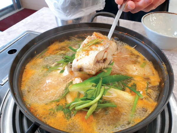 주문한 ‘동태탕’도 살이 통통한 큼지막한 동태가 콩나물뿐만 아니라 각종 야채와 보글보글 끓고 있는 동태탕의 국물은 시원함이 끝이 없었다. 동태살은 먹기 좋은 크기에 뽀얀 살이 국물과 함께 조화가 잘됐고 함께 제공되는 기본 반찬(6가지)과 와사비장에 살짝 찍어 먹는 맛 또한 일품이다.