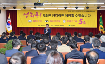 오전, 오후 두 차례로 나눠 실시하는 금번 교육은 5급 이상 간부공무원을 대상으로 법무법인 온세상의 김재련 변호사를 초빙해 ‘당신은 폭력으로부터 자유로운가요?’라는 주제로, 폭력을 바라보는 관점, 폭력의 형태, 상황발생시 대응전략 등에 관한 강의와 질의 응답하는 순서로 2시간 동안 진행됐다.