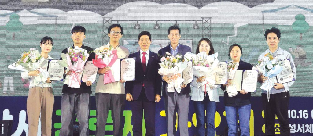 '제4회 달서 근로자 가요제' 수상자들이 이태훈 달서구청장과 기념촬영을 하고있다.성서산업단지관리공단 주관으로 열린 ‘제4회 달서 근로자 가요제’가 지난 16일(수) 성서체육공원에서 성서산단 및 기업체 근로자들의 화합과 위로를 위한 축제로 성황리 개최됐다.
