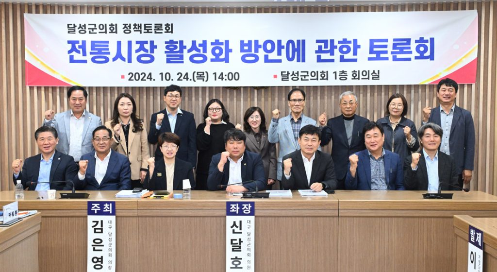 달성군의회(의장 김은영)는 10월 24일 14시 달성군의회 1층 회의실에서 ‘달성군 전통시장 활성화 방안’을 주제로 정책토론회를 개최하였다.