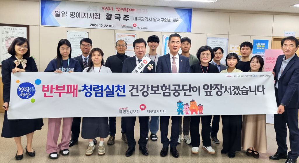 국민건강보험공단 대구달서지사(지사장 조제만)는 지난 22일(화) 대구광역시달서구 의회 황국주 의원(국민의힘 복지문화위원회)을 일일명예지사장으로 위촉 했다.