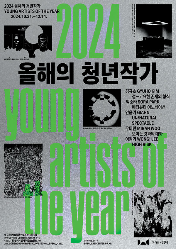 대구문화예술회관(관장 김희철)은 ‘2024 올해의 청년작가’展을 12월 14일(토)까지 대구문화예술회관 미술관 1~5전시실에서 개최한다. 이번 전시에서 올해 초 공모를 통해 선정된 청년작가 5인(김규호, 박소라, 안윤기, 우미란, 이원기)의 다양한 작품 세계를 선보인다.